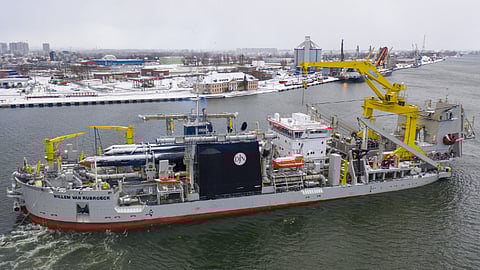 Built by Remontowa of Poland, Willem van Rubroeck is the largest CSD in the Jan De Nul fleet with a total installed power of 40,975 kW, three dredging pumps of 8,500 kW each, a cutter capacity of 8,500 kW, and an operational working depth up to 45 metres. It was built to dredge in very hard rocky soil and is capable of withstanding more difficult conditions, such as higher waves and more challenging weather conditions.