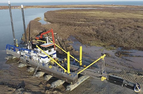 Named Zephir, the vessel has a length of 33.15 metres, a beam of 6.95 metres, a draught of 1.15 metres, a displacement of 115 tonnes, a rated maximum dredging depth of 14 metres and equipment that includes a deck crane, anchor booms, and a spud carriage unit. The dredger can pump up to 3,000 cubic metres of mixture in one hour through its floating pipeline. Damen said the total installed power of 941 kW ensures that all functions on board can work independently and simultaneously.