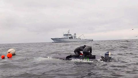 The boat capsized approximately 16 kilometres off the coast at 17:30 local time. The three tourists, who were the fishing boat's only occupants, were found sitting on the keel of the upturned vessel when the Norwegian Coast Guard patrol craft Sortland arrived after receiving a request for assistance.
