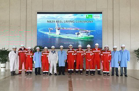 Construction has started on GeoSea's new offshore installation vessel Orion, with her keel-laying ceremony at China's COSCO Shipyard.