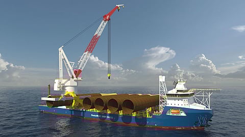The vessel will be 220 metres long and 55 metres wide and have 9,500 square metres of deck space. A 5,000-tonne-rated heavy lift crane with an increased load moment and lifting height will be in an optimised position to ensure efficiency and flexibility.
