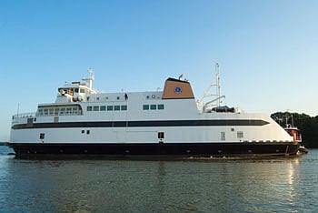 The ferry has the capacity to carry 384 passengers, 55 automobiles or 10 eighteen-wheel tractor-trailers.