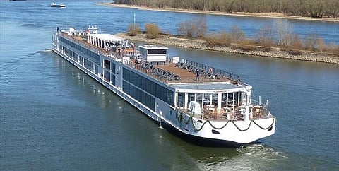 Viking Gymir was introduced into service on the Rhine River by Basel-based Viking River Cruises earlier this year. It is one of two hybrid diesel-electric river cruise ships built for Viking by German shipyard Neptun Werft in 2021.
