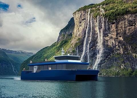 Developed with an outside deck and large lounge windows to give passengers the best view of the fjords, waterfalls and mountains in the UNESCO World Heritage site of Geirangerfjord, the low-wash passenger catamaran will also provide a personal audio guide available in 12 languages.
