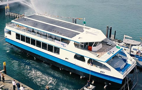 The ferry is notable for its propulsion system, which draws power from onboard lithium polymer batteries with a total capacity of 1,100 kWh and an array of solar panels installed on the roof. This arrangement drives two 75kW rudder propellers to deliver a service speed of eight knots. Charging of the batteries can be done overnight with the aid of a shore power connection. During days of pleasant weather, the solar panels can provide continuous charging even while the ferry is underway.