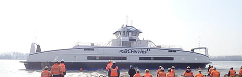 BC Ferries has confirmed that a new Island-class battery hybrid Ro-Pax vessel was launched into the water at Damen Shipyards Galati in Romania on Thursday, February 18.