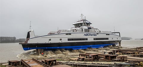 BC Ferries' fourth Island-class Ro-Pax ferry was launched into the water for the first time at Damen Shipyards Galati in Romania on Thursday, December 17.