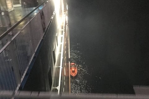 Brittany Ferries' 204-metre vessel Cap Finistère, which was en route from Bilbao to Portsmouth, was the first to arrive at the scene, and its crew took the boater aboard at around 05:50. He was later transferred ashore upon the ferry's arrival in Portsmouth.