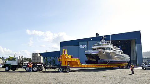The Teknicraft-designed vessel is a hydrofoil-assisted catamaran with a length of 77 feet (23.4 metres), a beam of 26.5 feet (eight metres), accommodations for up to 30 people, and two Caterpillar C18 803hp (598kW) engines that deliver a cruising speed of 24 knots.
