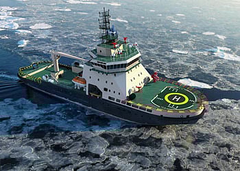 The 84-metre vessel has a draught of seven metres and can break ice up to 1.5 metres thick.
