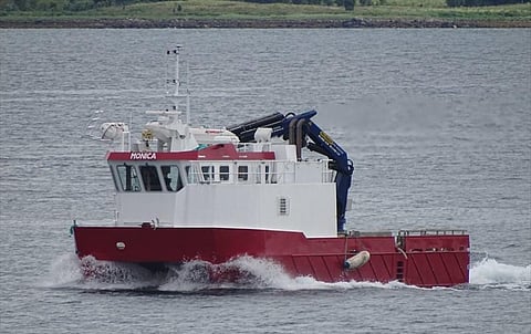 The aquaculture support workboat Monica was conducting regular operations at some fish cages off Djupvik in the country's Nordland region when a blaze erupted below the main deck at around 09:45 on Saturday.