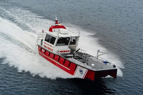 The 8.5-metre boat is powered by two Mercury Verado 260kW outboard engines and is equipped with a fire pump with a dedicated V8 engine and a fire monitor.