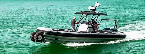 The initial Asis RIB series that will become available to Saudi customers are a 9.5-metre boat with seating for up to nine people and a nine-metre amphibious boat (pictured) that can accommodate seven people.