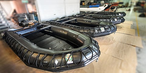 The PSD FI boats each have a length of 5.85 metres and are built to military specifications with heavy duty 1670 Dtex polyamide CSM neoprene materials. This enables the boats to operate even under sea state three as well as withstand a range of weather conditions from extreme humidity to severe sun exposure.