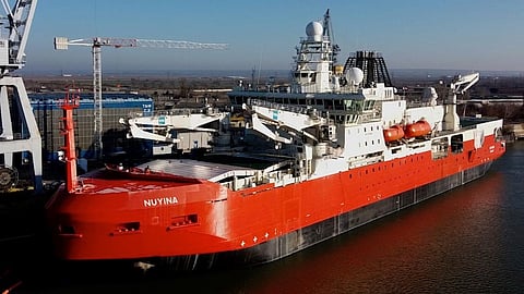Construction of the ship at Damen Shipyards in Romania commenced in May 2017, with a steel cutting ceremony, while a keel laying ceremony in August saw the first building-block of the ship consolidated in the drydock.