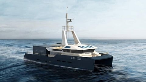 The catamaran will have an onboard pyrolysis unit with a rated capacity of 40 litres of fuel per hour. The plastic that will be placed in the unit for conversion into fuel will be collected in port.