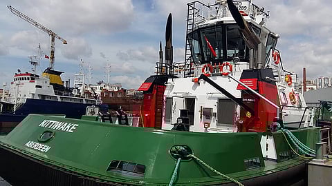 An azimuthing stern drive tug with fire-fighting capabilities, Kittiwake has 60 tonnes of bollard pull.