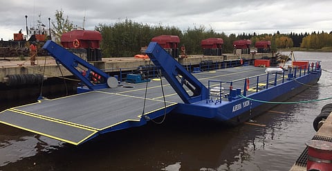 The 30-metre-long Aurora Yukon will operate with an existing tug to carry vehicles and passengers across the Mackenzie River at Norman Wells.
